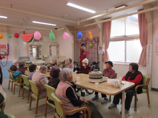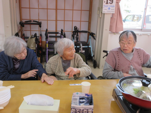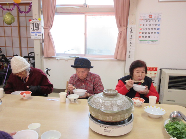 昼食に鍋を囲んで心も体もホッカホカに温もりました。鍋に使用した白菜はブナの木の畑でご利用者さんと一緒に育てたんですよ~✨とても立派に育ってくれたおかげで皆さんおいしいと喜んで食べてくださいました🎵