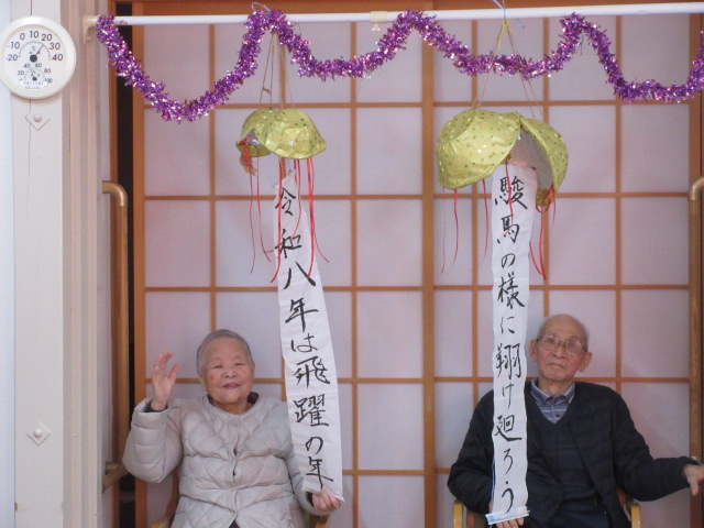 くす玉を割ると「令和8年は飛躍の年 駿馬の様に翔け廻ろう」と書いてありました。