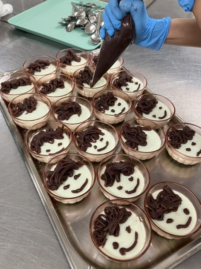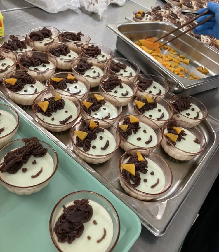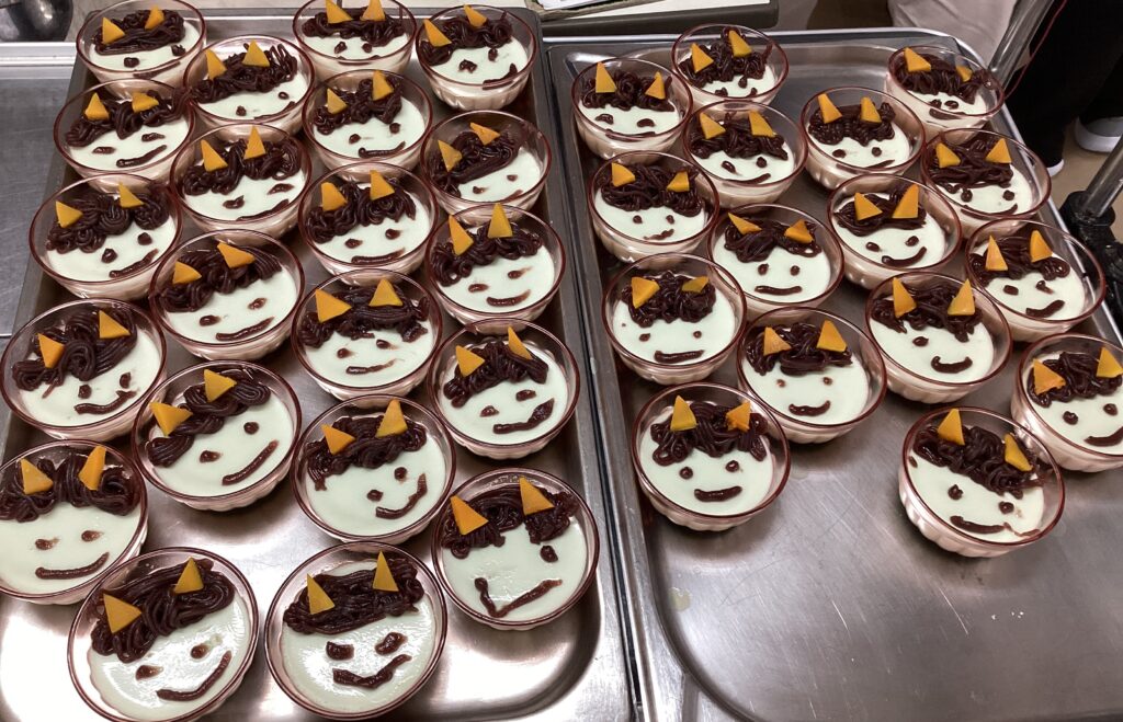 厨房職員が一つ一つ丁寧に鬼の顔を描き、かわいい鬼が沢山出来ました✨