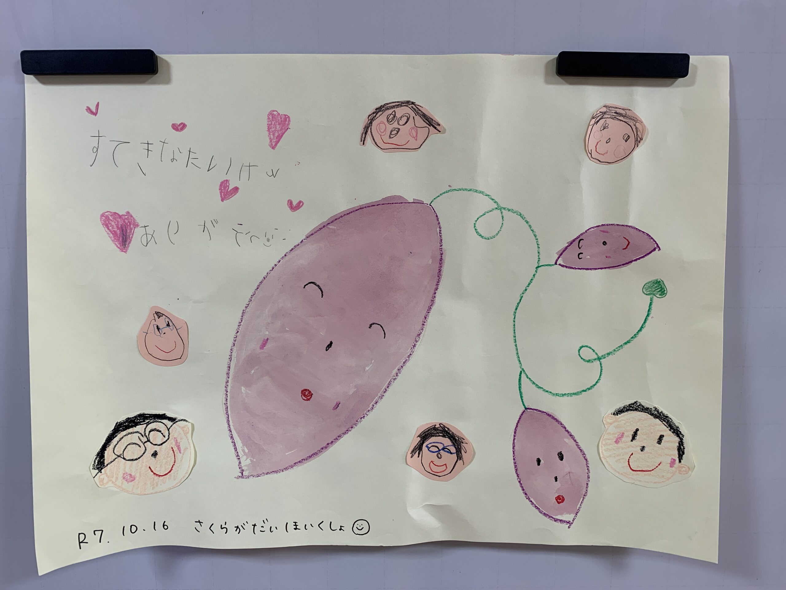 【あゆみ】🤭 🍁 🍠芋掘り🍠🍁🤭 2025.10.17 雨予報でしたが、園児のパワー💪で無事あゆみの芋掘りができました☆*:.。. o(≧▽≦)o .。.:*☆ かわいいお便りありがとうございました😊 【琴引の里】コスモス🌸🌸🌸第三弾!! 【琴引の里】りんご狩り🍎