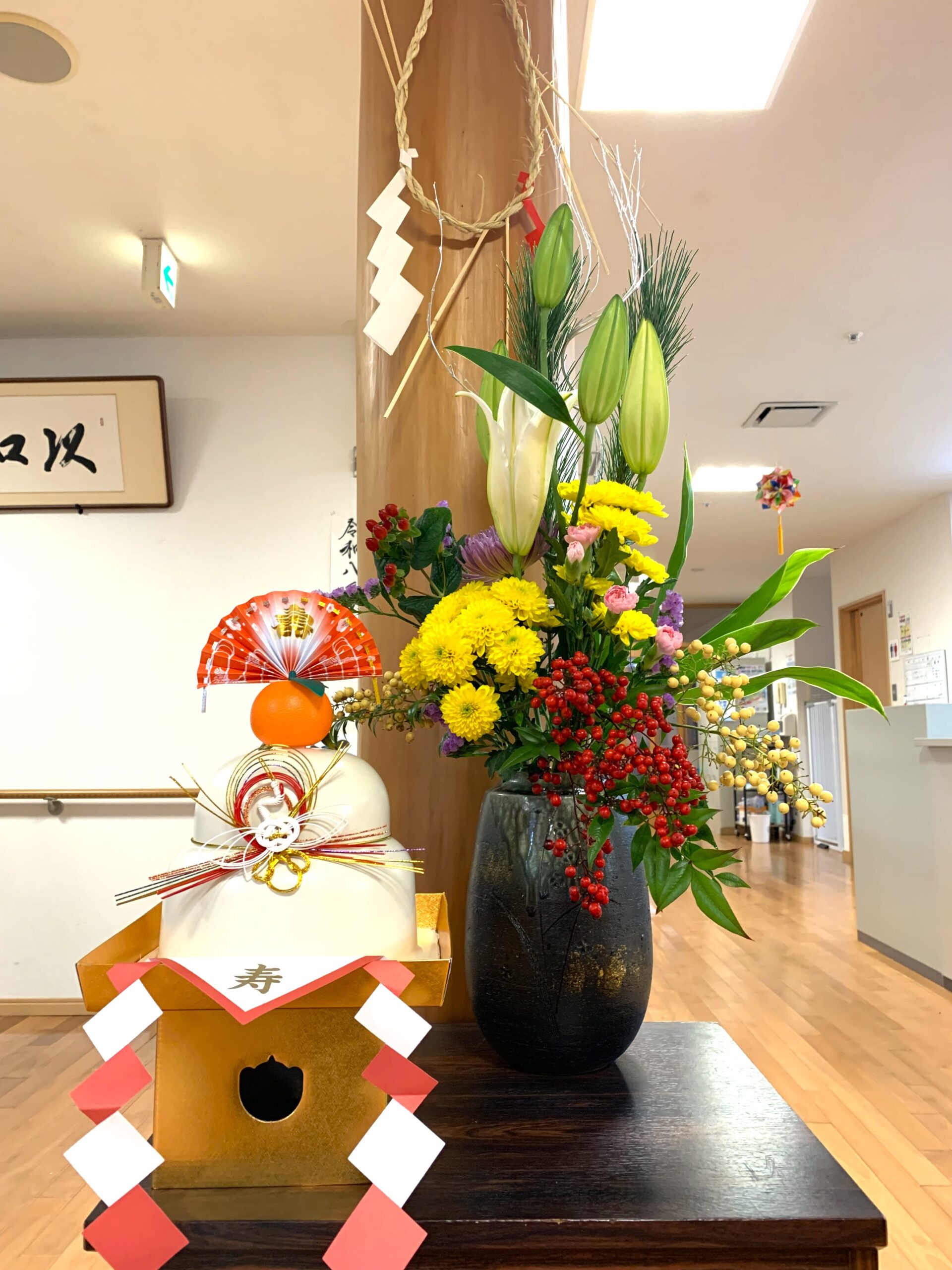 書道教室の藤原薫先生に書をいただき、各ホールにお花と書の飾りつけができました✨