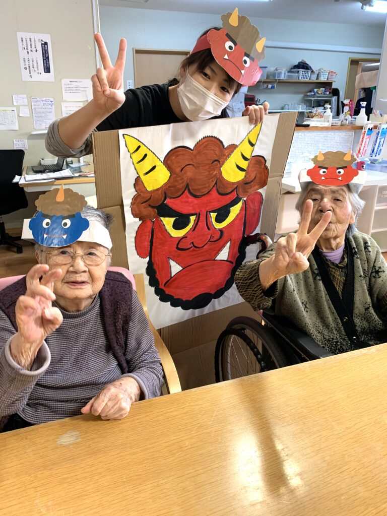 2月に入り、節分行事で豆に見立てたボールで鬼をやっつけました!