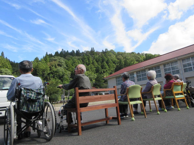 外の風に当たり、季節を肌で感じていただきました。中には「さむーていけん」という声もありましたが日に当たれば暑くなったようでうとうとされる方もおられました😊たまにはいいですね✨
