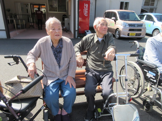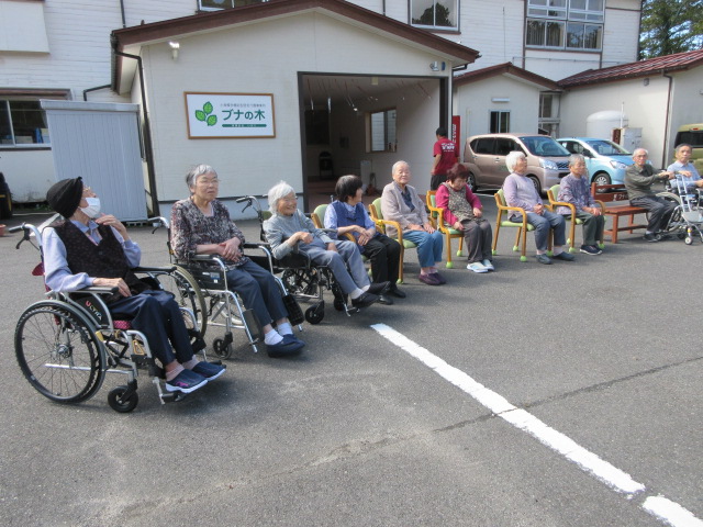 外の風に当たり、季節を肌で感じていただきました。中には「さむーていけん」という声もありましたが日に当たれば暑くなったようでうとうとされる方もおられました😊たまにはいいですね✨
